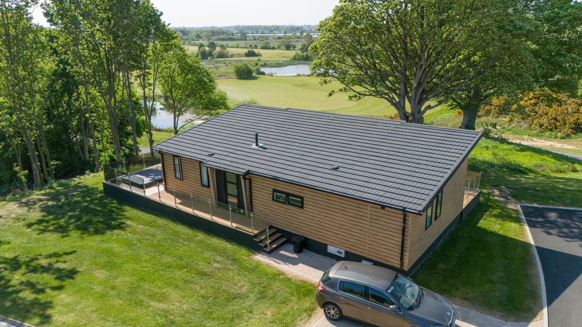 Each lodge has its own lit double parking bay, luxury wraparound decking featuring glass balustrades and, if you desire, a hot tub too.